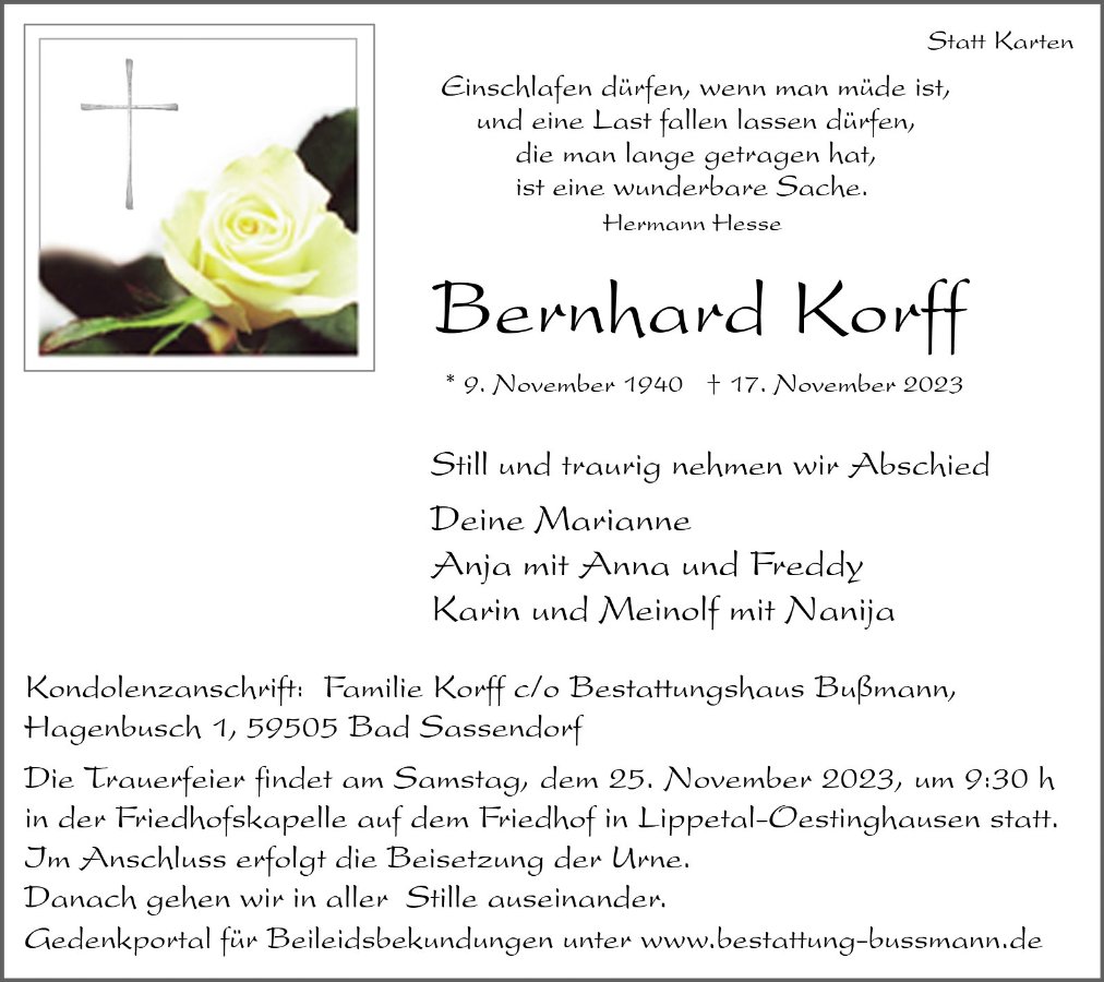 gestorben am 17. November 2023 in Lippetal-Oestinghausen