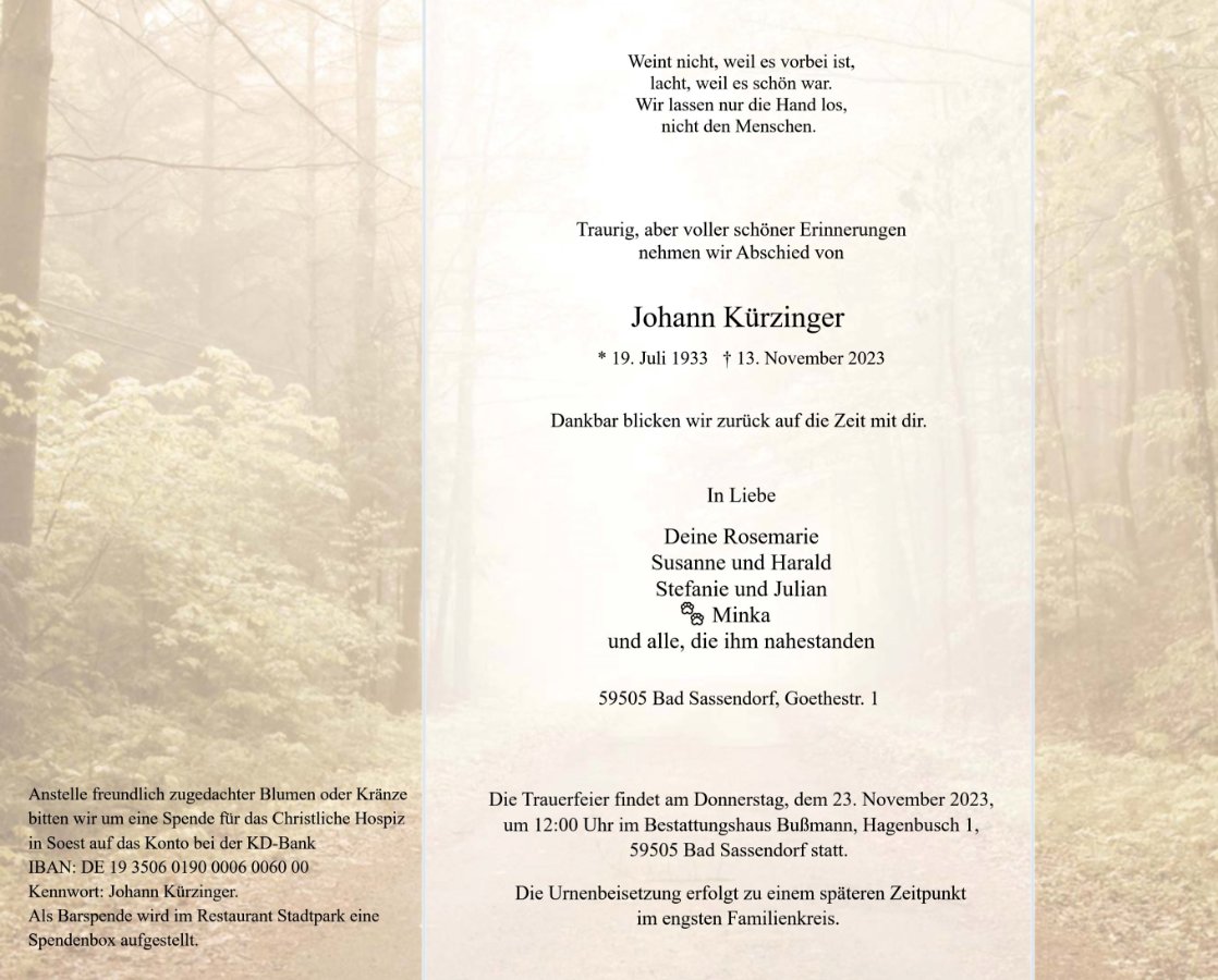gestorben am 13. November 2023 in Soest Christliches Hospiz